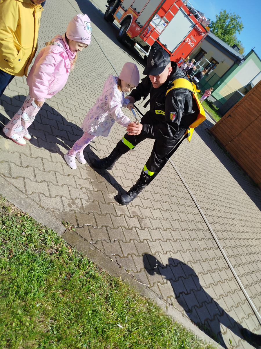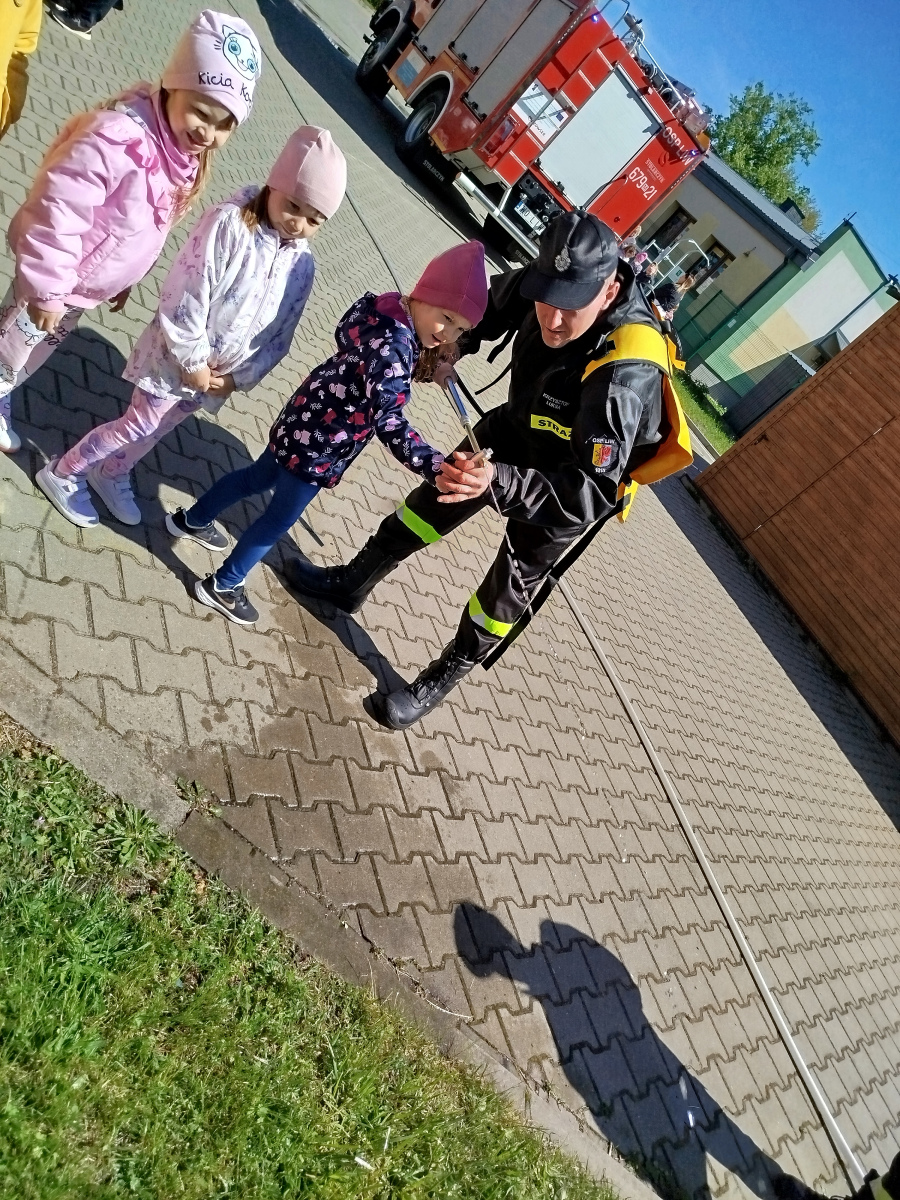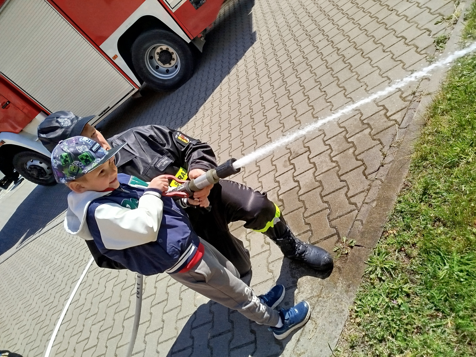 7 maja nasze przedszkolaki miały okazję spotkać się ze strażakami Ochotniczej Straży Pożarnej w Liwie. Przedszkolaki dowiedziały się o trudnej i niebezpiecznej pracy strażaków, która nie polega tylko na gaszeniu pożarów, ale również na udzielaniu pomocy ludziom podczas powodzi, usuwaniu skutków wypadków samochodowych oraz wichur. Dzieci miały okazję zobaczyć specjalistyczne wozy strażackie wraz z całym wyposażeniem, sprzęt gaśniczy i ratunkowy oraz strój w jaki ubierają się strażacy do akcji. Dużą atrakcją było przymierzanie hełmów oraz możliwość przejechania się samochodem strażackim. Wizyta w straży pożarnej to doskonała forma edukacyjnego uświadomienia dzieci o zasadach bezpieczeństwa oraz właściwego zachowania się w przypadku pożaru, wypadku i innych zagrożeń. Dziękujemy strażakom za miłe i pouczające spotkanie. Życzymy wszystkim dalszej efektywnej służby i skutecznej realizacji nawet najtrudniejszych zadań.