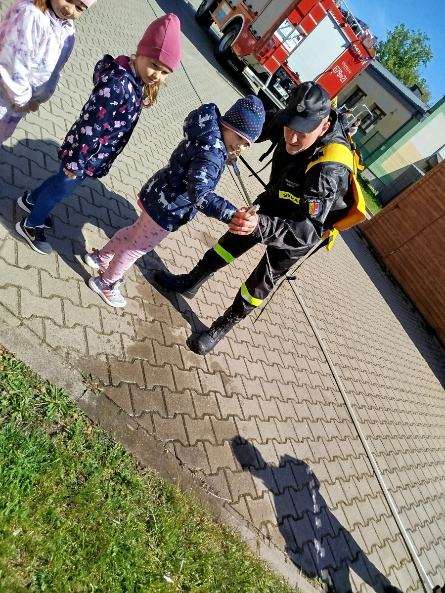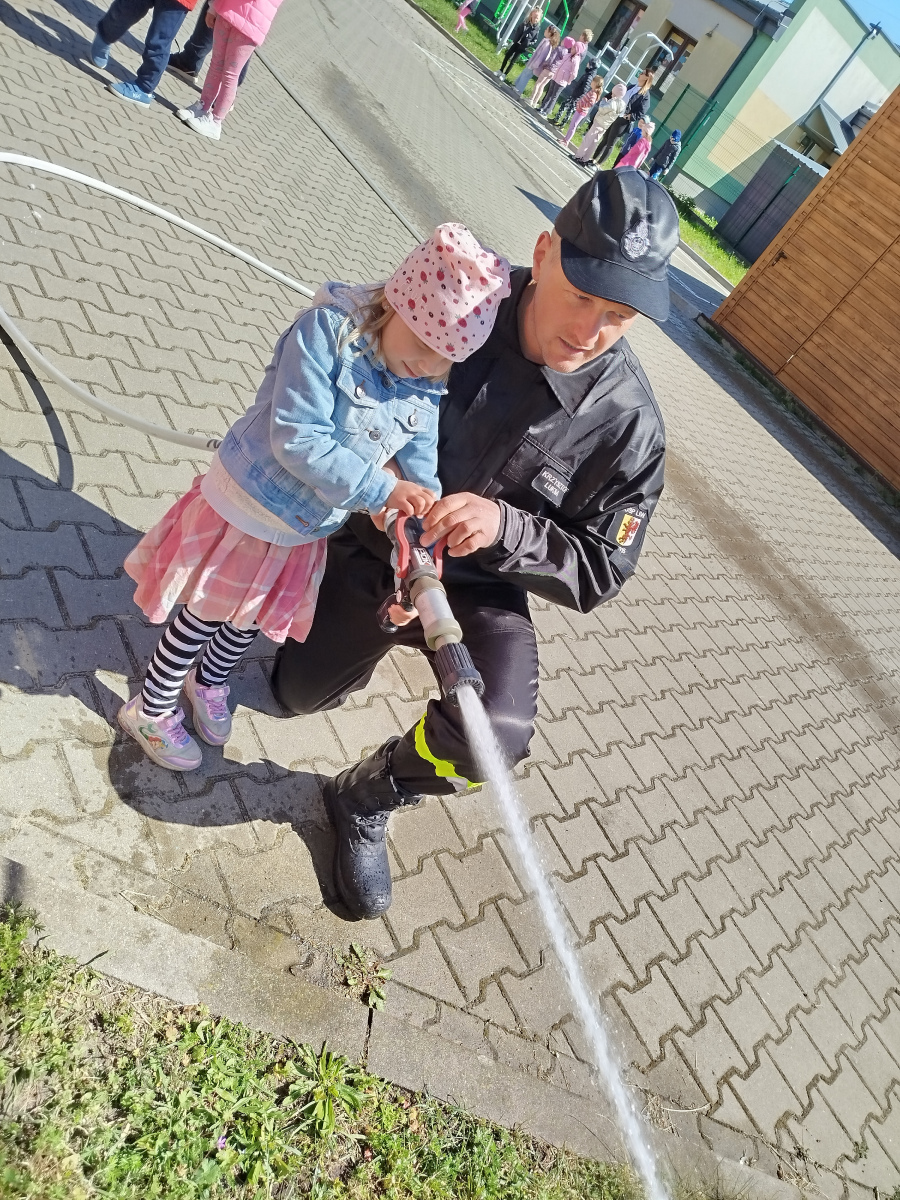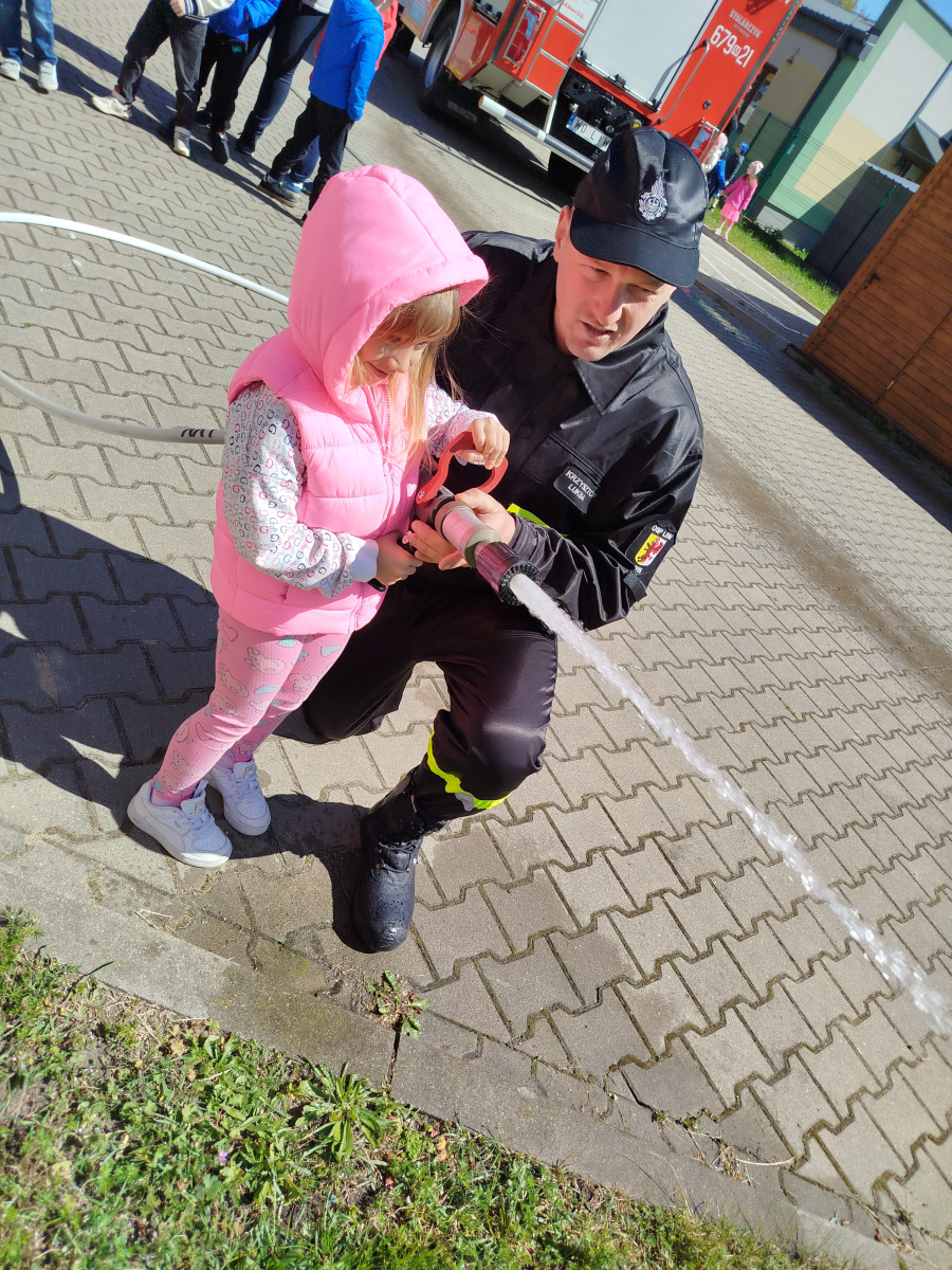 7 maja nasze przedszkolaki miały okazję spotkać się ze strażakami Ochotniczej Straży Pożarnej w Liwie. Przedszkolaki dowiedziały się o trudnej i niebezpiecznej pracy strażaków, która nie polega tylko na gaszeniu pożarów, ale również na udzielaniu pomocy ludziom podczas powodzi, usuwaniu skutków wypadków samochodowych oraz wichur. Dzieci miały okazję zobaczyć specjalistyczne wozy strażackie wraz z całym wyposażeniem, sprzęt gaśniczy i ratunkowy oraz strój w jaki ubierają się strażacy do akcji. Dużą atrakcją było przymierzanie hełmów oraz możliwość przejechania się samochodem strażackim. Wizyta w straży pożarnej to doskonała forma edukacyjnego uświadomienia dzieci o zasadach bezpieczeństwa oraz właściwego zachowania się w przypadku pożaru, wypadku i innych zagrożeń. Dziękujemy strażakom za miłe i pouczające spotkanie. Życzymy wszystkim dalszej efektywnej służby i skutecznej realizacji nawet najtrudniejszych zadań.