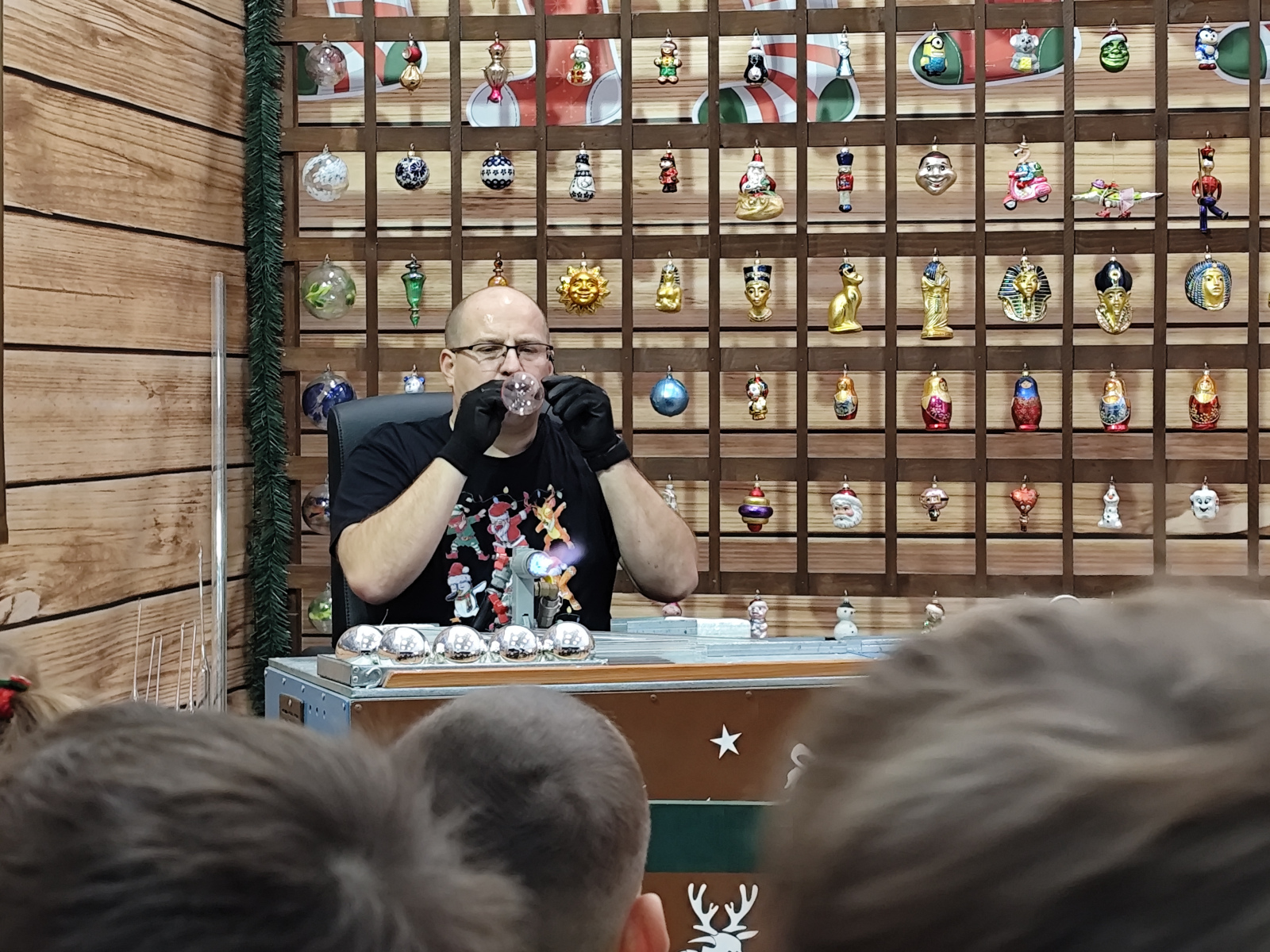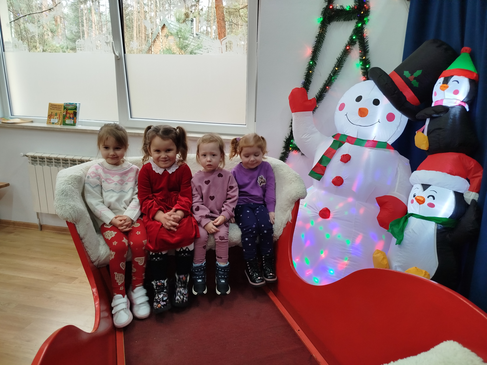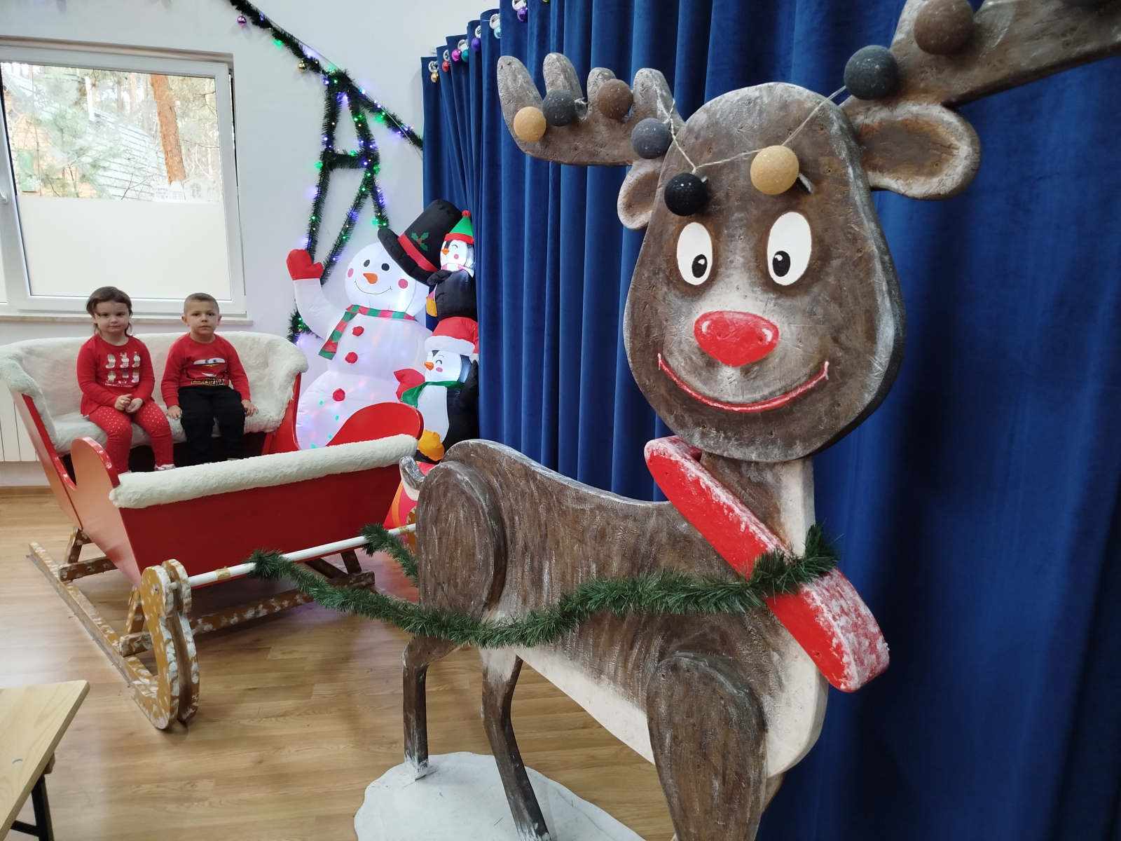 Naszą przygodę rozpoczęliśmy od poznania historii powstania bombki – dzieci z ciekawością obserwowały każdy etap tworzenia tej wyjątkowej ozdoby. Następnie czekała na nas sesja zdjęciowa w pięknych saniach Świętego Mikołaja, co wywołało mnóstwo uśmiechów i zachwytów. 📸✨
