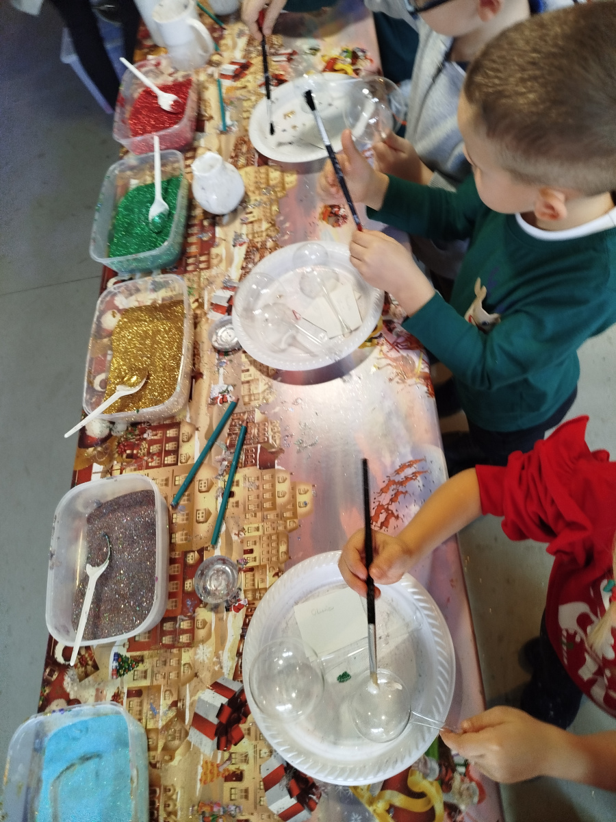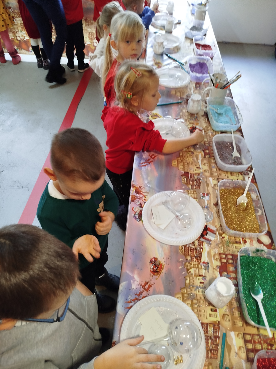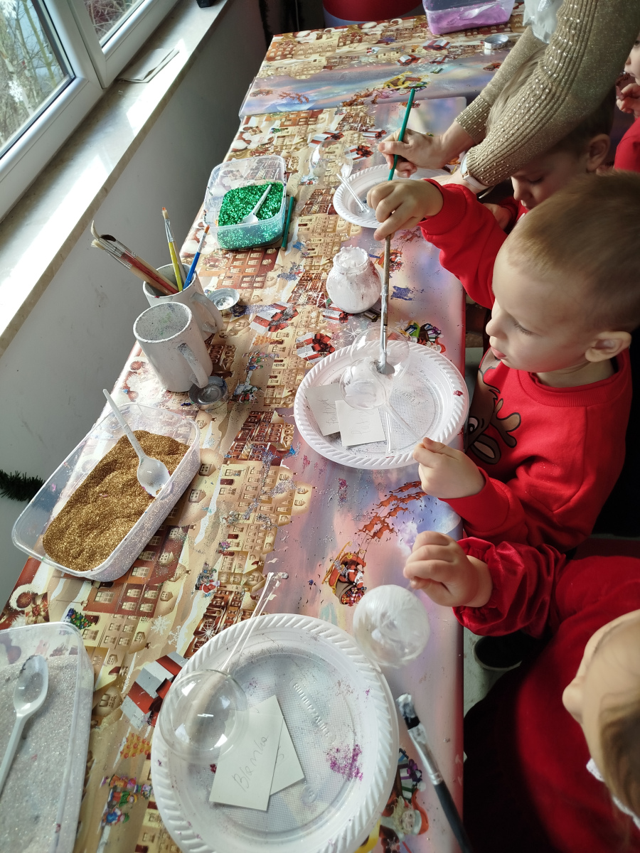 Kolejnym punktem programu było własnoręczne dekorowanie bombek – mali artyści wykazali się ogromną kreatywnością i starannością. 🎨💫
