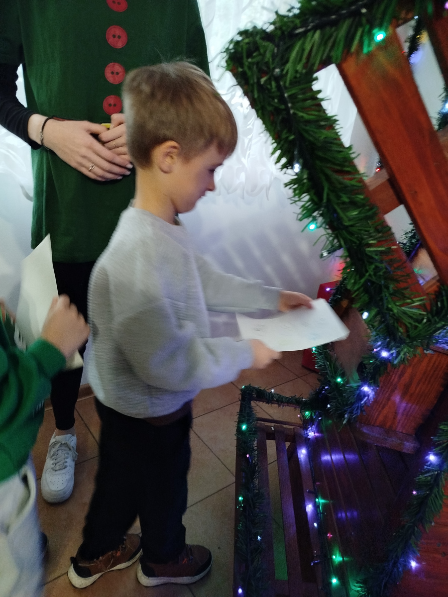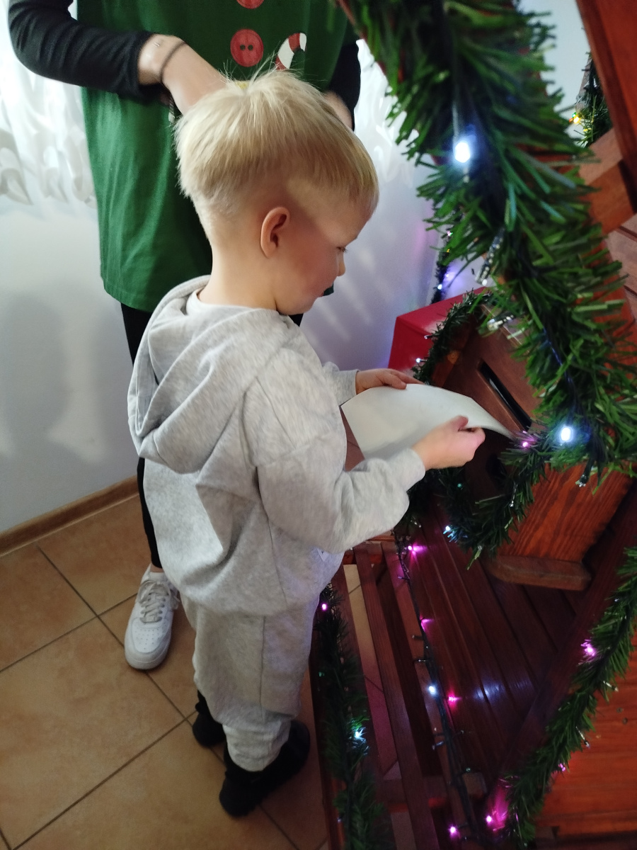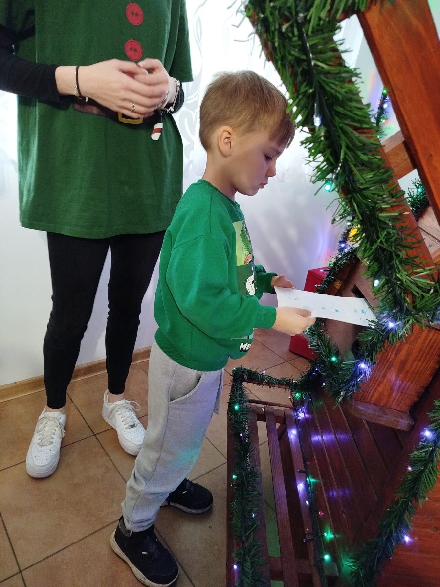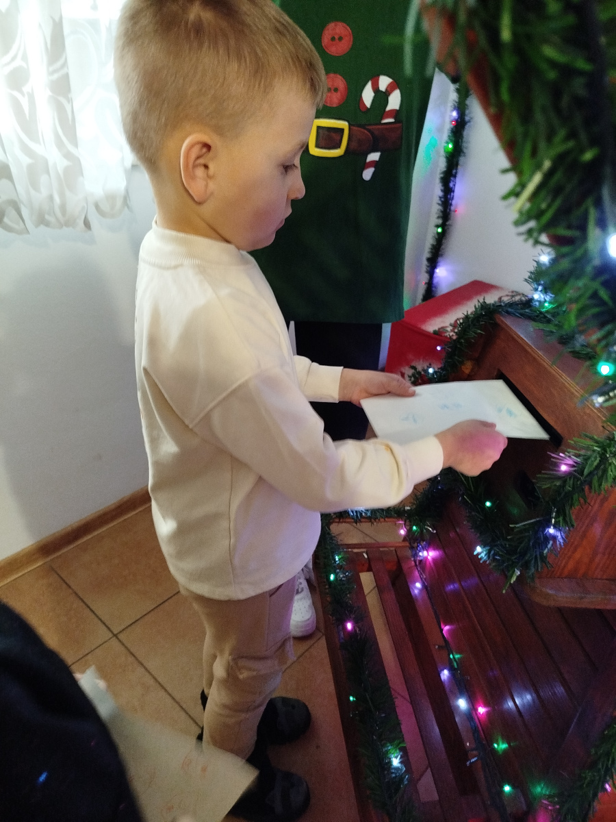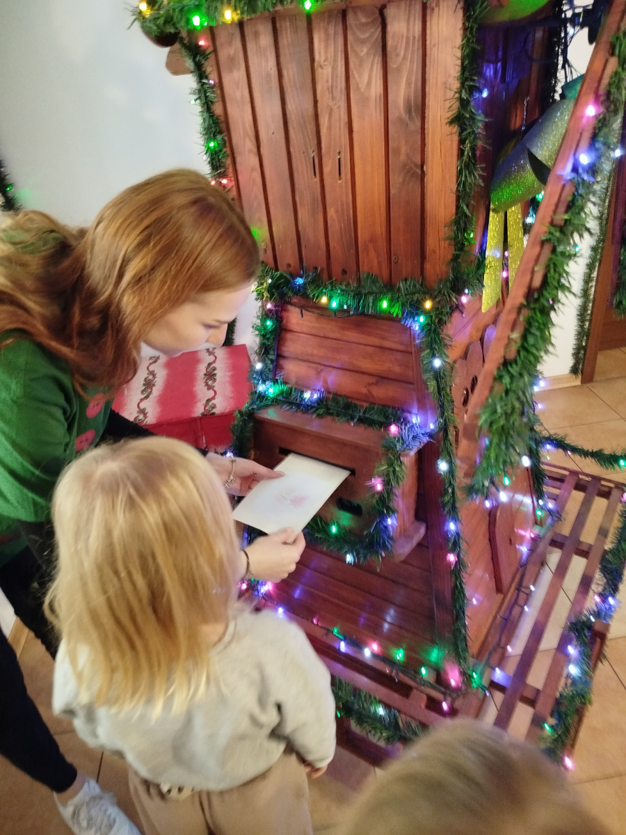 Później Święty Mikołaj zaprosił dzieci do wspólnego tańca i zabawy, a atmosfera była naprawdę bajkowa! 🎅💃🕺 Odwiedziliśmy również pokój Mikołaja, gdzie każdy mógł poczuć prawdziwy klimat Świąt. Następnie przyszedł czas na symboliczne zniszczenie „złych grzeszków”, które w mgnieniu oka zamieniły się w puch. Na zakończenie dzieci napisały listy do Mikołaja z wymarzonymi prezentami, a potem samodzielnie wrzuciły je do świątecznej skrzynki. ✉️🎁To był dzień pełen uśmiechu, wzruszeń i świątecznych cudów. Dziękujemy Bombkolandii za tak piękne wspomnienia! ❤️🎄