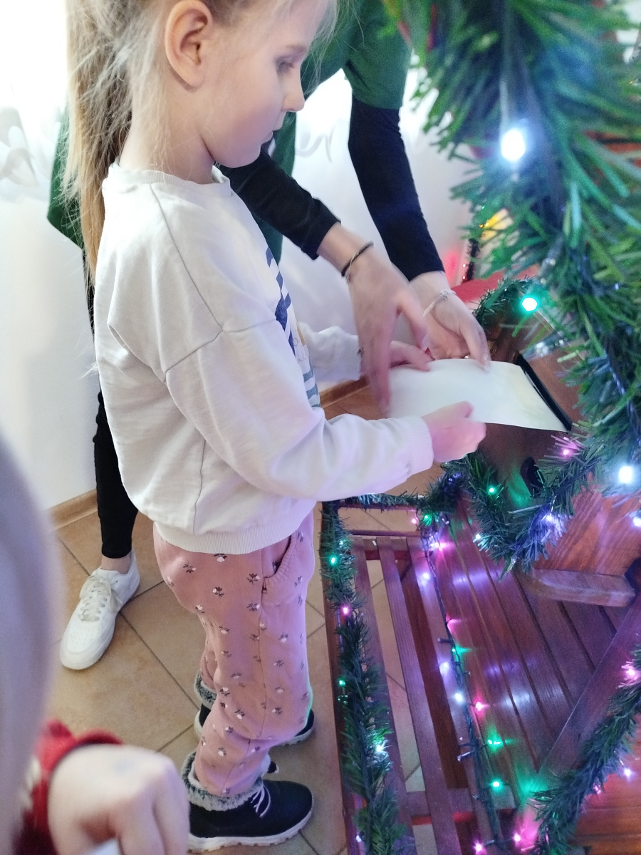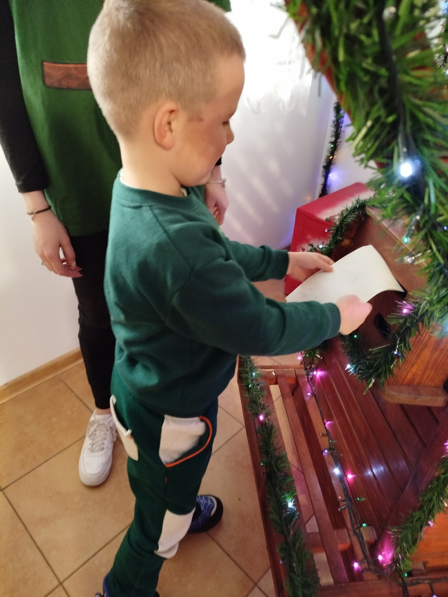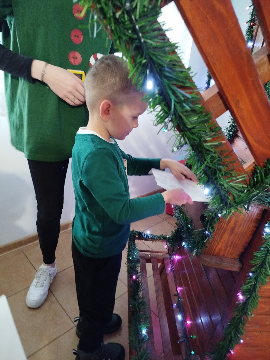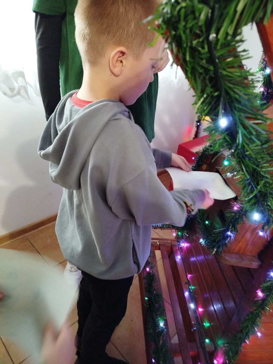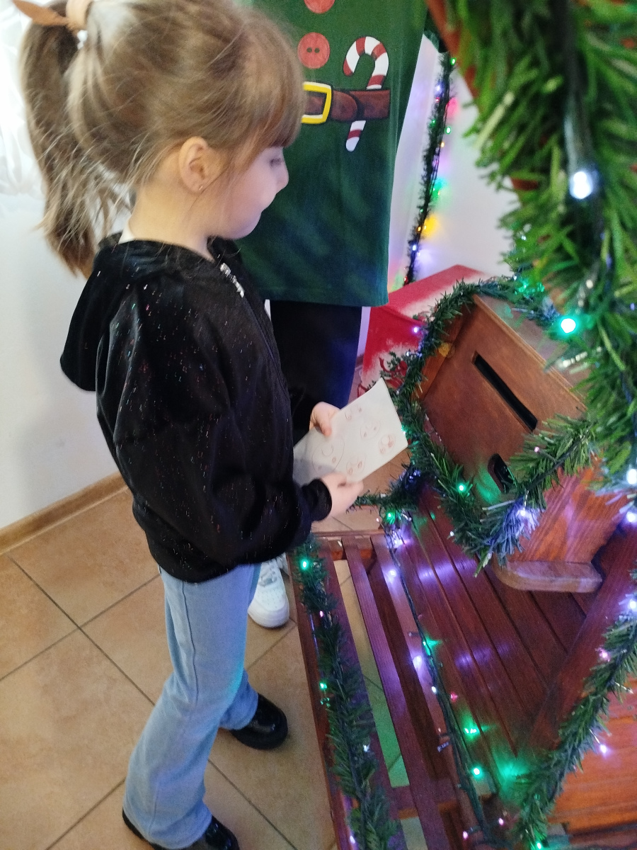 Później Święty Mikołaj zaprosił dzieci do wspólnego tańca i zabawy, a atmosfera była naprawdę bajkowa! 🎅💃🕺 Odwiedziliśmy również pokój Mikołaja, gdzie każdy mógł poczuć prawdziwy klimat Świąt. Następnie przyszedł czas na symboliczne zniszczenie „złych grzeszków”, które w mgnieniu oka zamieniły się w puch. Na zakończenie dzieci napisały listy do Mikołaja z wymarzonymi prezentami, a potem samodzielnie wrzuciły je do świątecznej skrzynki. ✉️🎁To był dzień pełen uśmiechu, wzruszeń i świątecznych cudów. Dziękujemy Bombkolandii za tak piękne wspomnienia! ❤️🎄