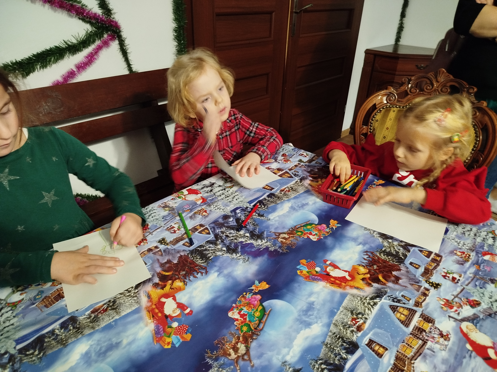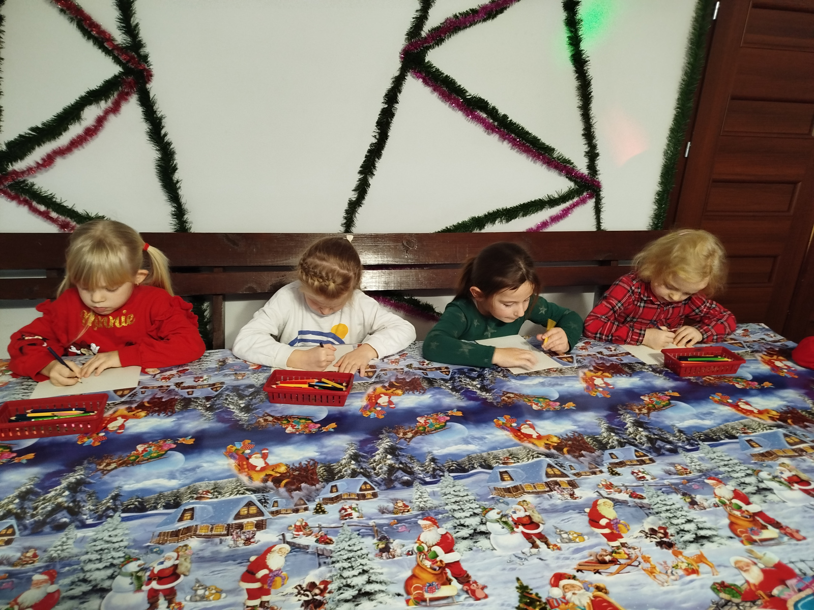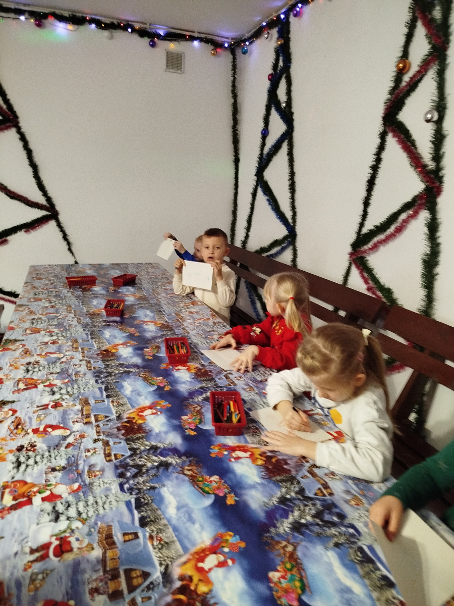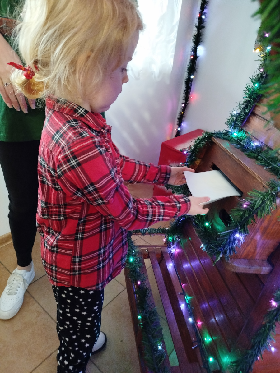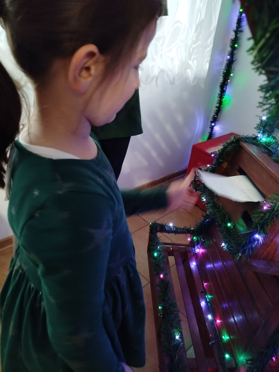 Później Święty Mikołaj zaprosił dzieci do wspólnego tańca i zabawy, a atmosfera była naprawdę bajkowa! 🎅💃🕺 Odwiedziliśmy również pokój Mikołaja, gdzie każdy mógł poczuć prawdziwy klimat Świąt. Następnie przyszedł czas na symboliczne zniszczenie „złych grzeszków”, które w mgnieniu oka zamieniły się w puch. Na zakończenie dzieci napisały listy do Mikołaja z wymarzonymi prezentami, a potem samodzielnie wrzuciły je do świątecznej skrzynki. ✉️🎁To był dzień pełen uśmiechu, wzruszeń i świątecznych cudów. Dziękujemy Bombkolandii za tak piękne wspomnienia! ❤️🎄