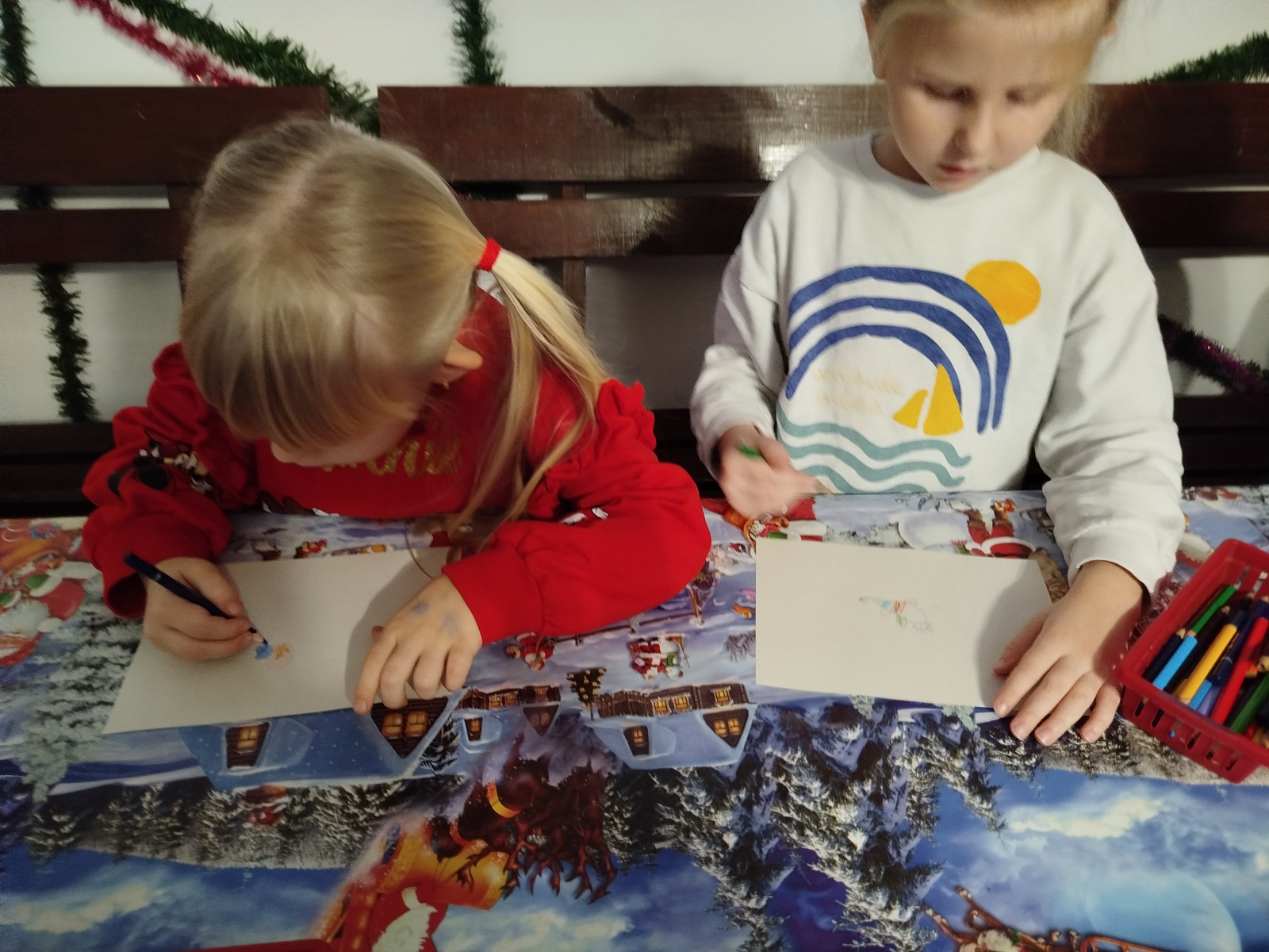 Naszą przygodę rozpoczęliśmy od poznania historii powstania bombki – dzieci z ciekawością obserwowały każdy etap tworzenia tej wyjątkowej ozdoby. Następnie czekała na nas sesja zdjęciowa w pięknych saniach Świętego Mikołaja, co wywołało mnóstwo uśmiechów i zachwytów. 📸✨