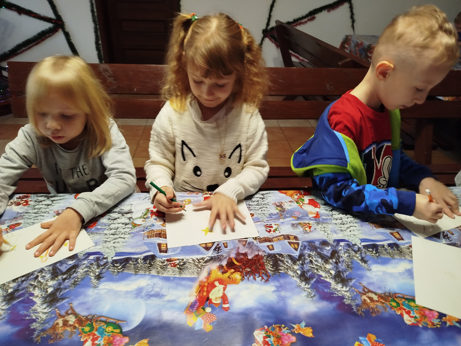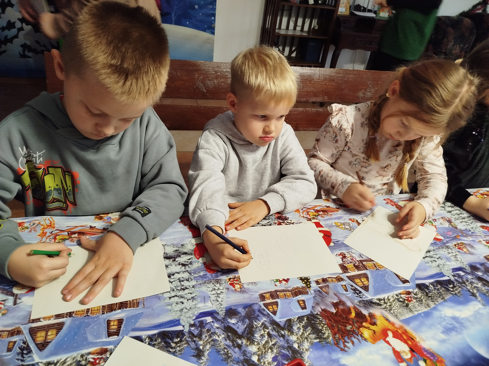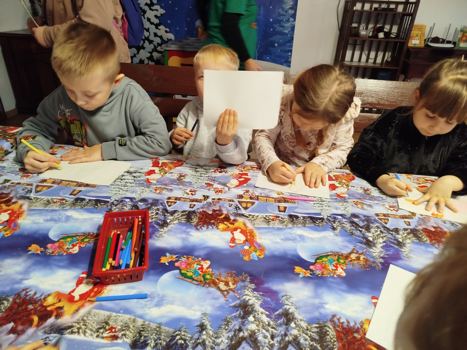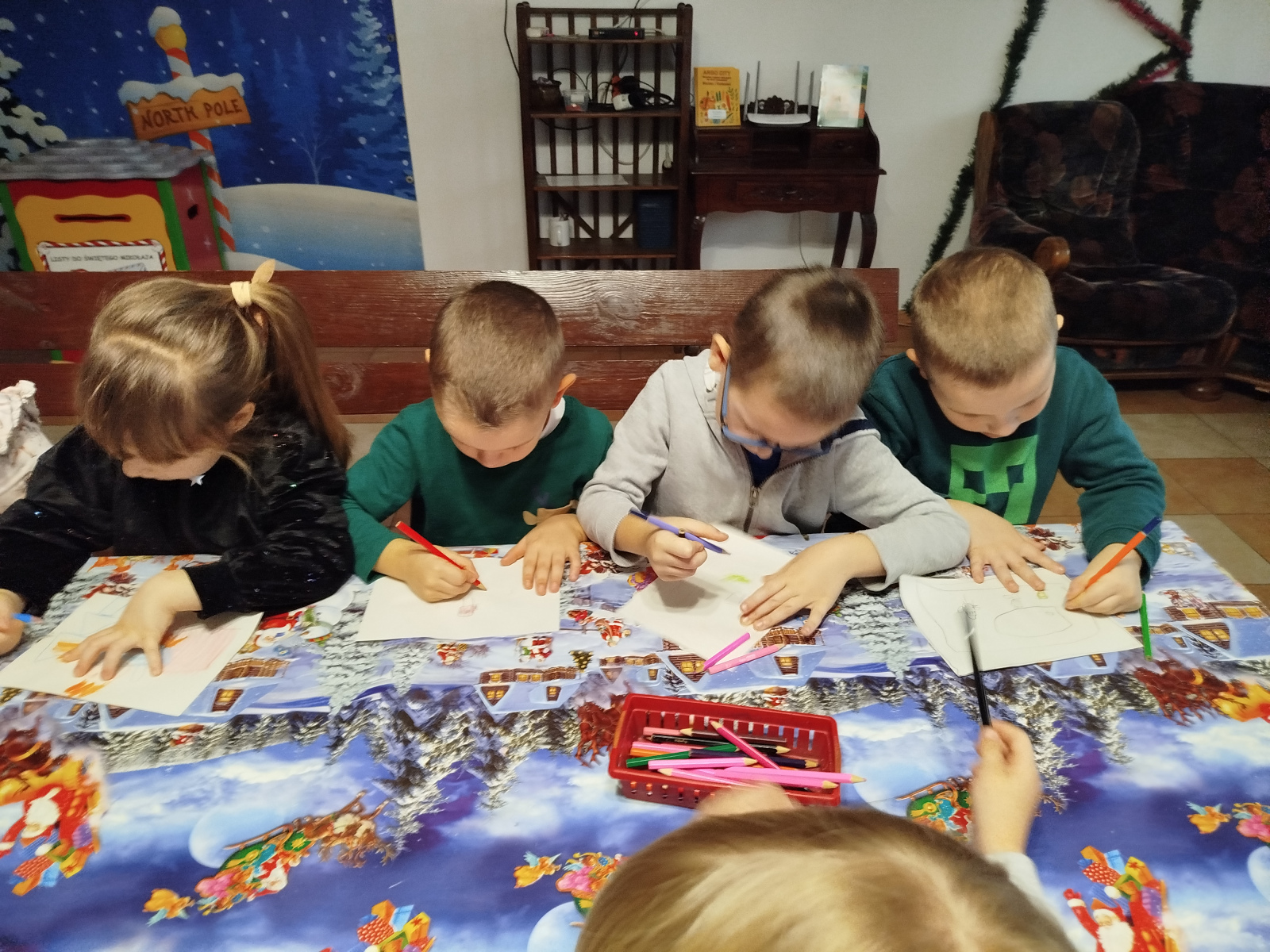 Później Święty Mikołaj zaprosił dzieci do wspólnego tańca i zabawy, a atmosfera była naprawdę bajkowa! 🎅💃🕺 Odwiedziliśmy również pokój Mikołaja, gdzie każdy mógł poczuć prawdziwy klimat Świąt. Następnie przyszedł czas na symboliczne zniszczenie „złych grzeszków”, które w mgnieniu oka zamieniły się w puch. Na zakończenie dzieci napisały listy do Mikołaja z wymarzonymi prezentami, a potem samodzielnie wrzuciły je do świątecznej skrzynki. ✉️🎁To był dzień pełen uśmiechu, wzruszeń i świątecznych cudów. Dziękujemy Bombkolandii za tak piękne wspomnienia! ❤️🎄
