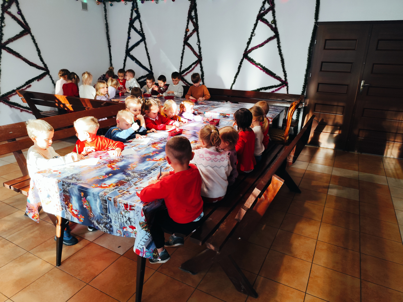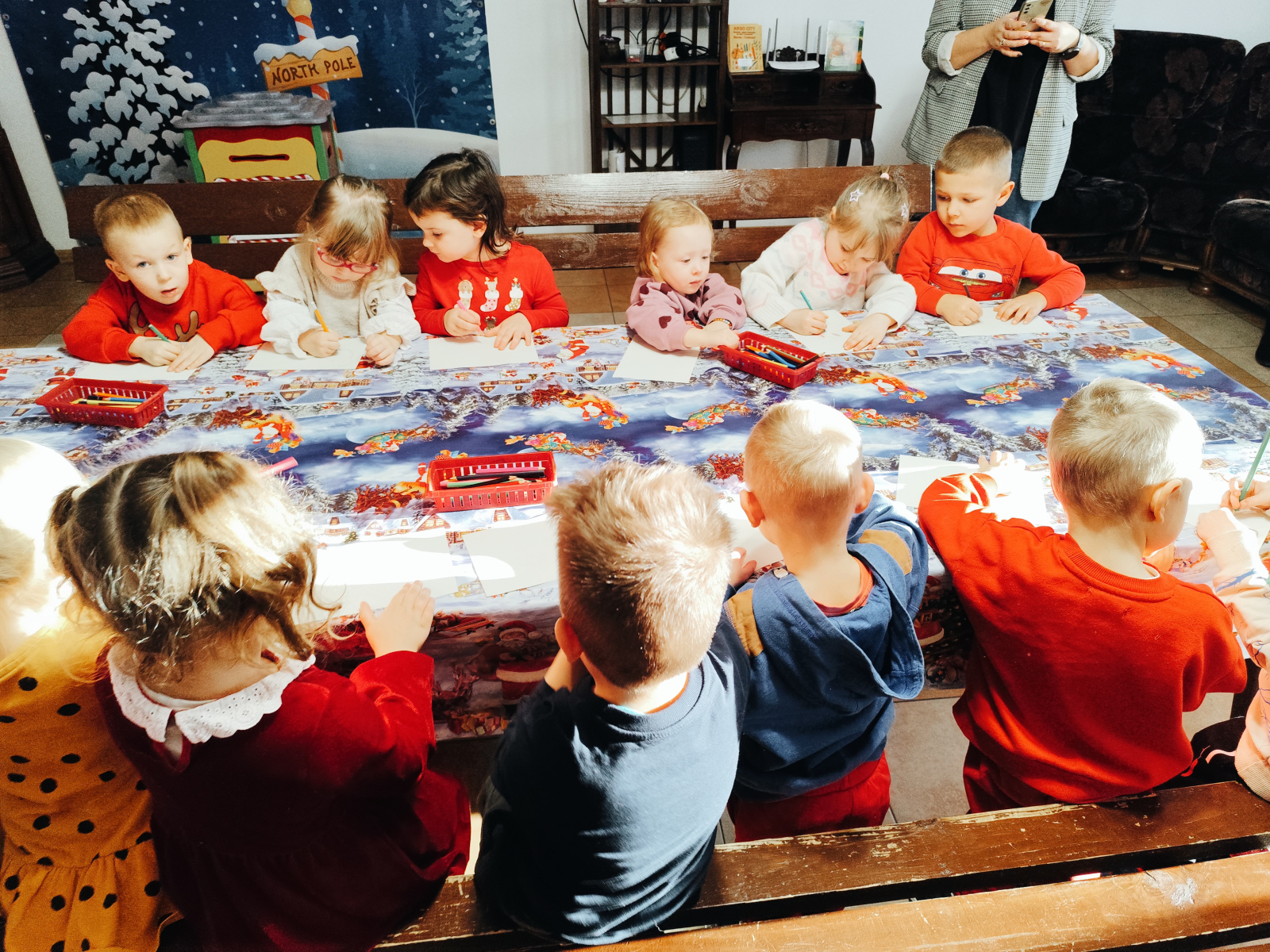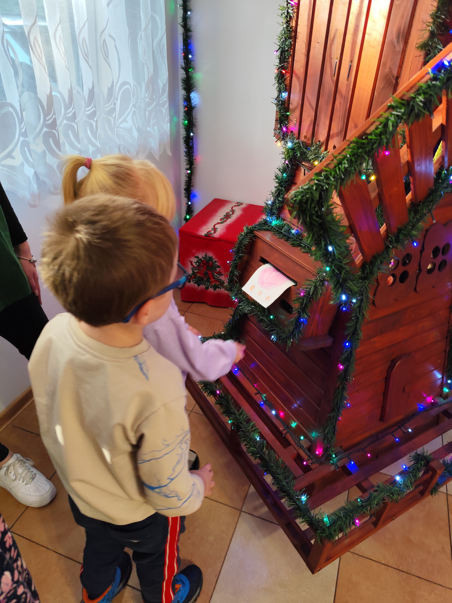 Później Święty Mikołaj zaprosił dzieci do wspólnego tańca i zabawy, a atmosfera była naprawdę bajkowa! 🎅💃🕺 Odwiedziliśmy również pokój Mikołaja, gdzie każdy mógł poczuć prawdziwy klimat Świąt. Następnie przyszedł czas na symboliczne zniszczenie „złych grzeszków”, które w mgnieniu oka zamieniły się w puch. Na zakończenie dzieci napisały listy do Mikołaja z wymarzonymi prezentami, a potem samodzielnie wrzuciły je do świątecznej skrzynki. ✉️🎁To był dzień pełen uśmiechu, wzruszeń i świątecznych cudów. Dziękujemy Bombkolandii za tak piękne wspomnienia! ❤️🎄