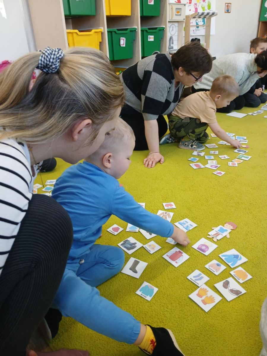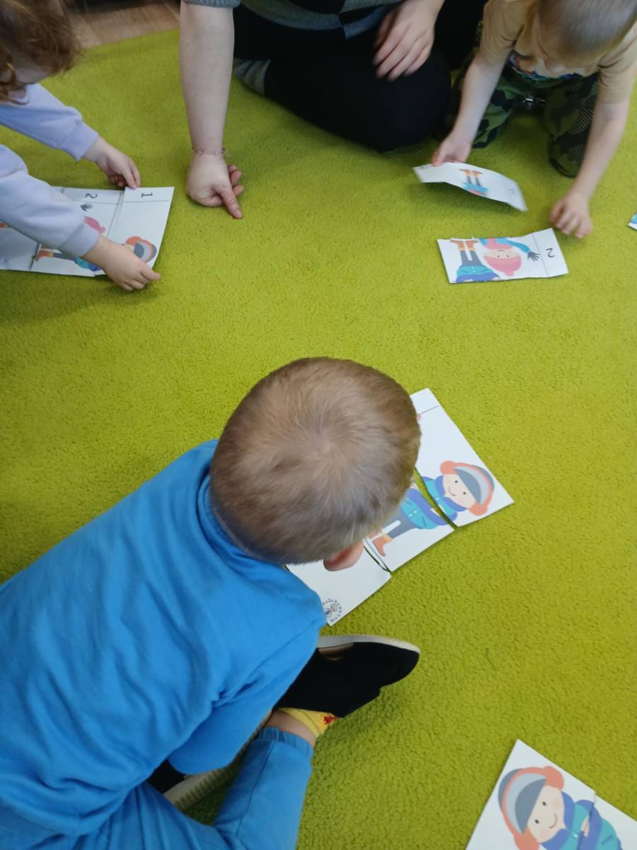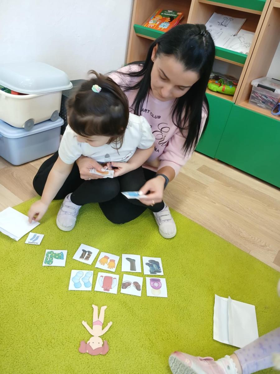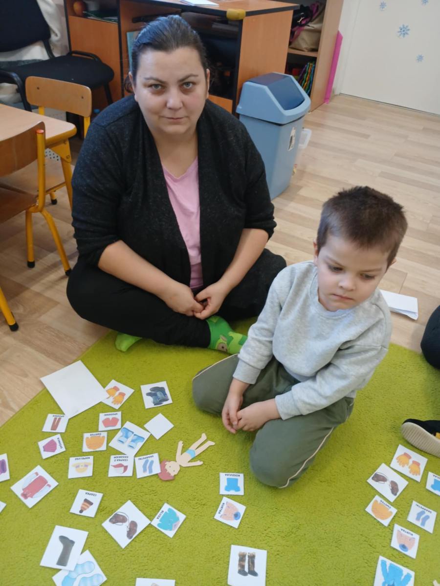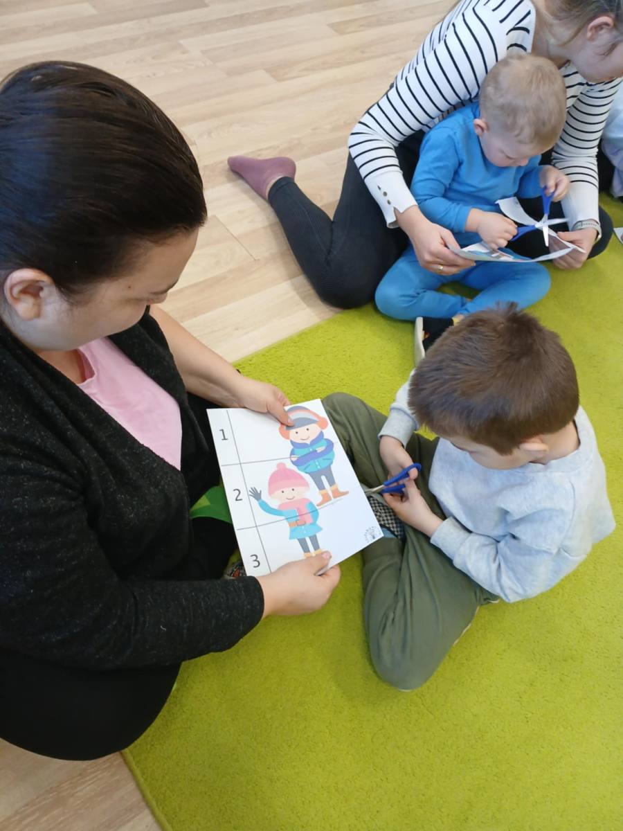 , ćwiczyły umiejętność ubierania dziewczynki i chłopczyka na zimowy spacer