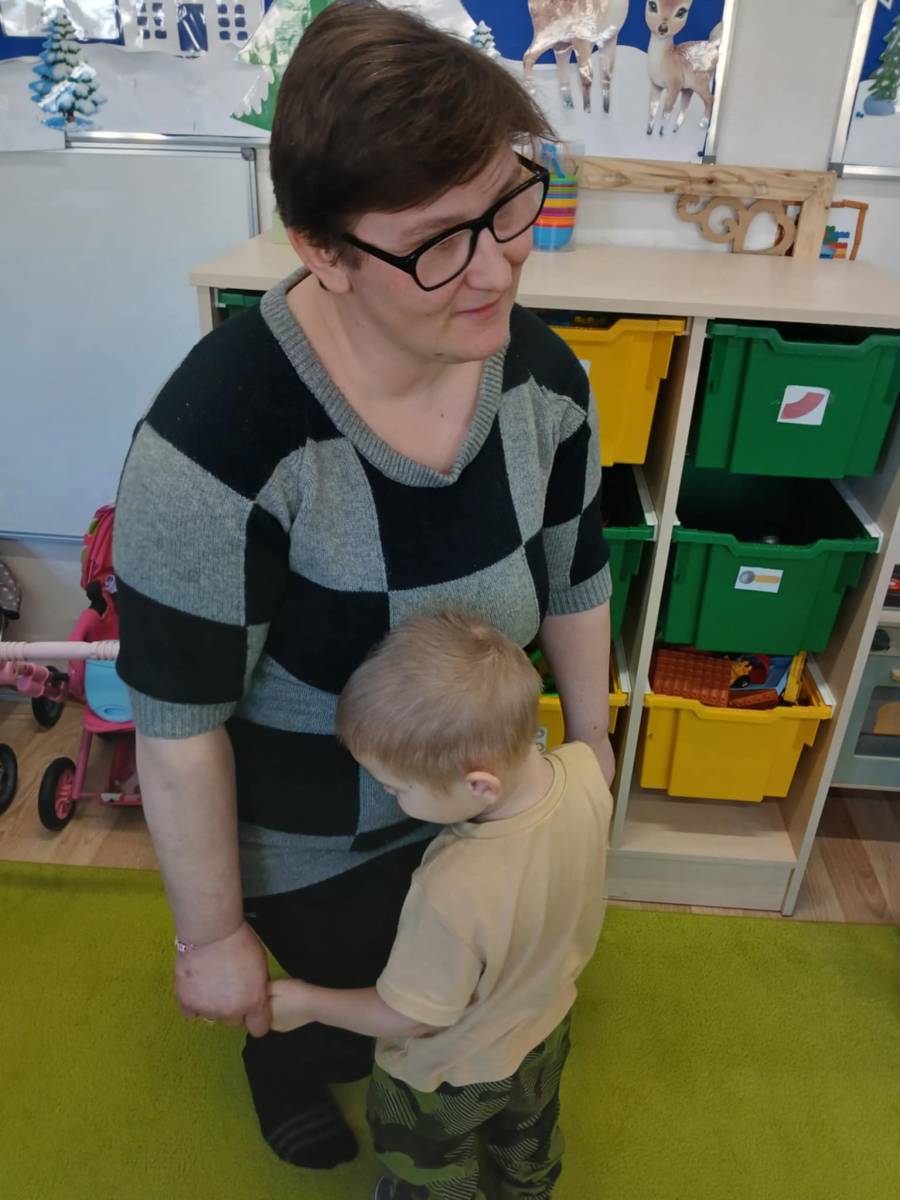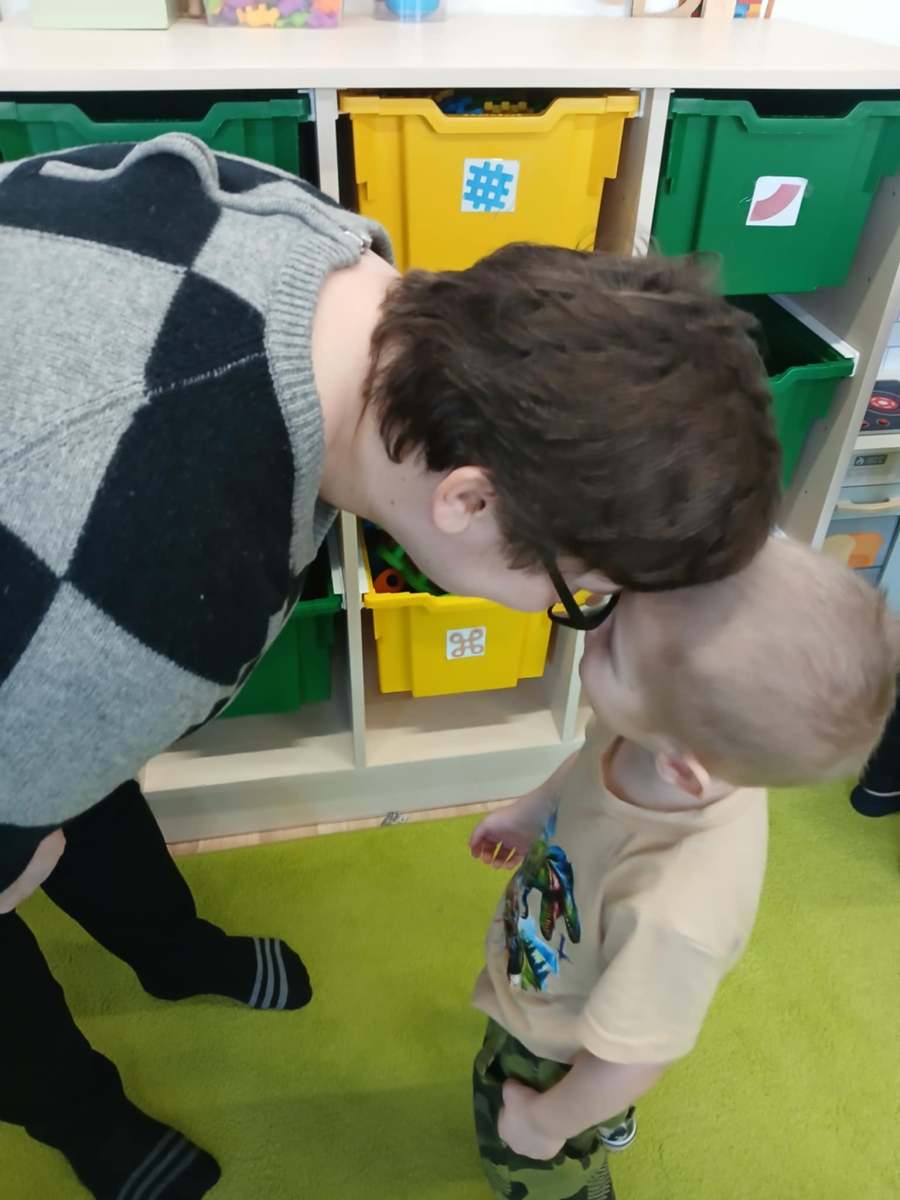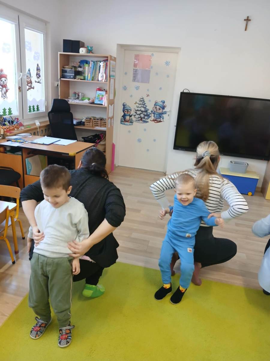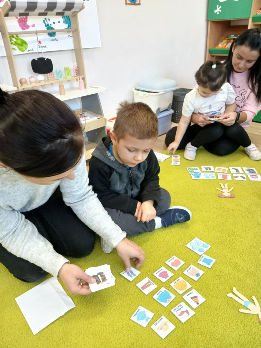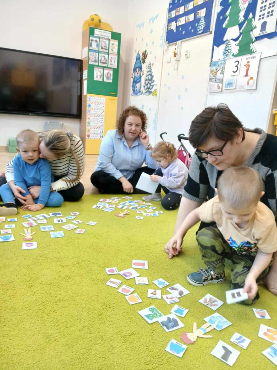 , ćwiczyły umiejętność ubierania dziewczynki i chłopczyka na zimowy spacer