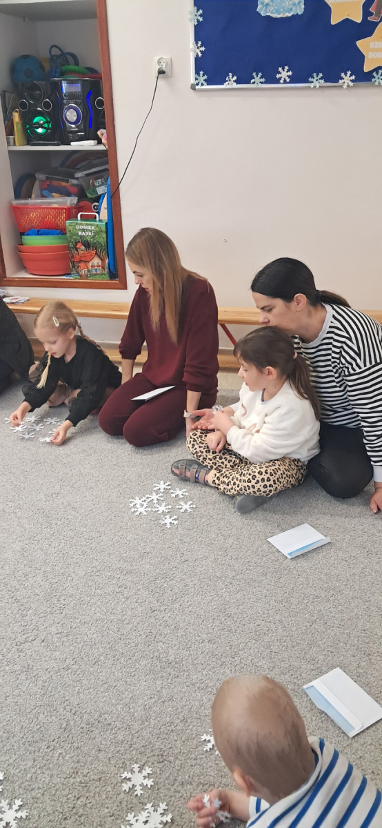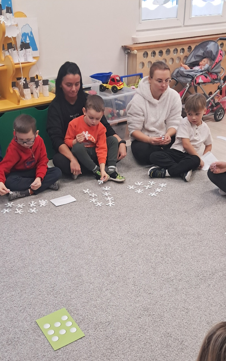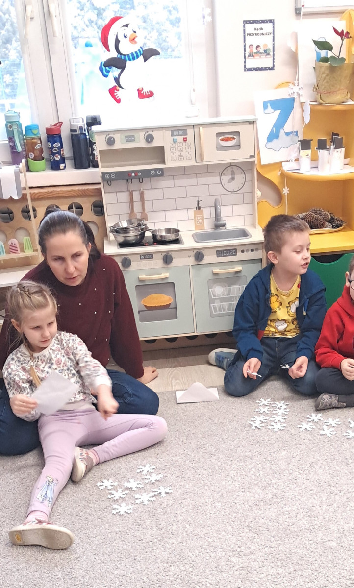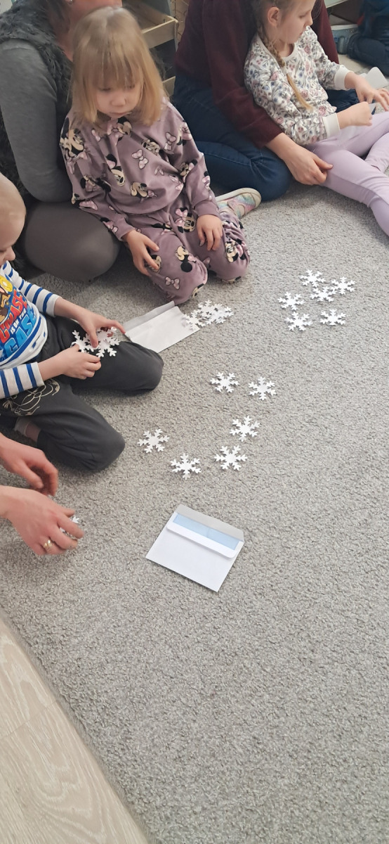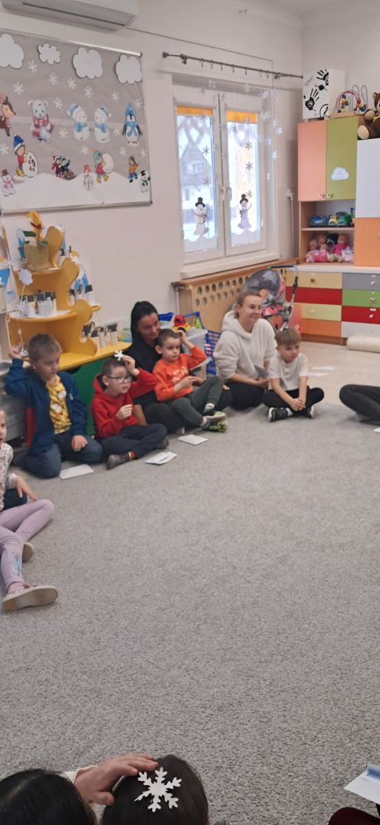 4 Lutego odbyły się zajęcia otwarte w grupie ,,Pszczółki’’ Przedszkolaki miały okazję pokazać swoim rodzicom jak się uczą poprzez zabawę i ile już potrafią. Dzieci otrzymały od Pani Zimy pudełko z zadaniami . Podczas zajęć przedszkolaki rozwiązywały zagadki dotyczące Zimy, wirowały przy muzyce jak śnieżynki, dopasowywały obrazki do odpowiedniej pory roku, znajdywały dwie takie same śnieżynki, przeliczały w zakresie do 10, ćwiczyły orientację w przestrzeni oraz wykonały pracę plastyczną.